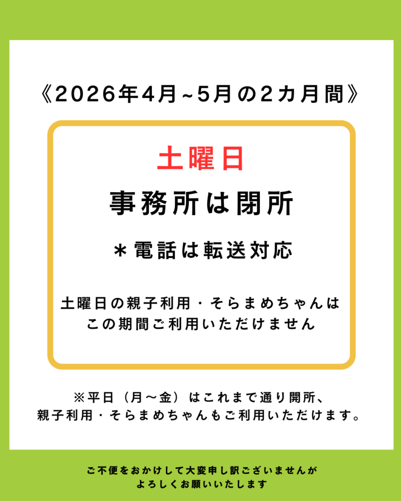 4月・5月【土曜日のみ】事務所の閉所のお知らせ(こぼう)