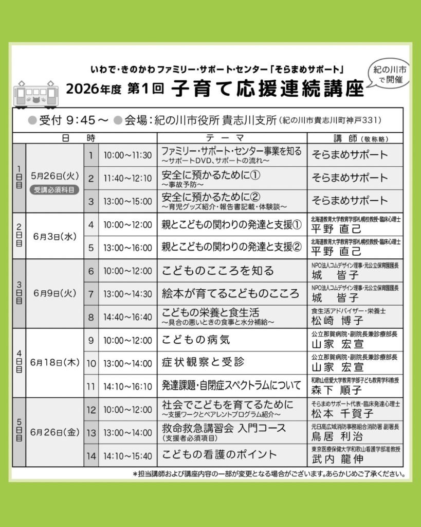 2026年度第1回子育て応援連続講座(いわで・きのかわ)